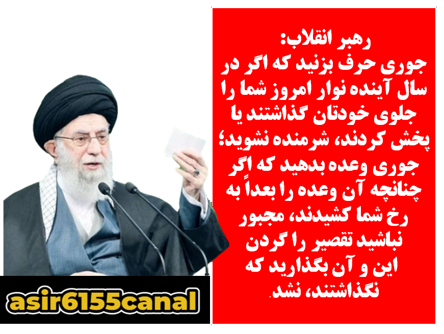 حالا یکی نگه این بنده خدا ضد ولایت فقیه ویا بقول اون یکی خط نفاق براش بکشند ایکاش به عمق حرفاش پی ببرند دوستان نه این که از روی تعصب کورکورانه طوطی وار تکرارکنیم ...منافق -دشمن -معاند -ووووویکبار هم ازروی خرد حرفی زنیم لطفا  [ جمعه ۳۱ شهریور ۱۴۰۲ ]  [ 4:33 PM ]  [ اسیر6155 ]