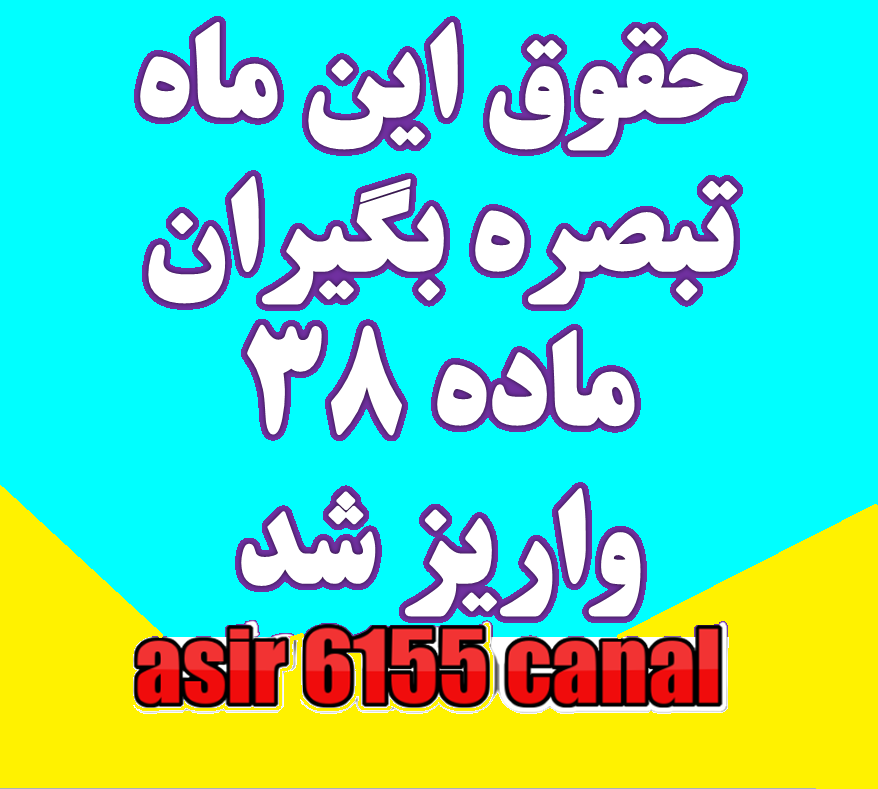 واریز حقوق شهریورماه تبصره بگیران ماده 38 بدون هیچ تغییری از ساعت سه بعدازظهرروز پنجشنبه 30شهریور1402آغاز شد  [ پنجشنبه ۳۰ شهریور ۱۴۰۲ ]  [ 3:59 PM ]  [ اسیر6155 ]