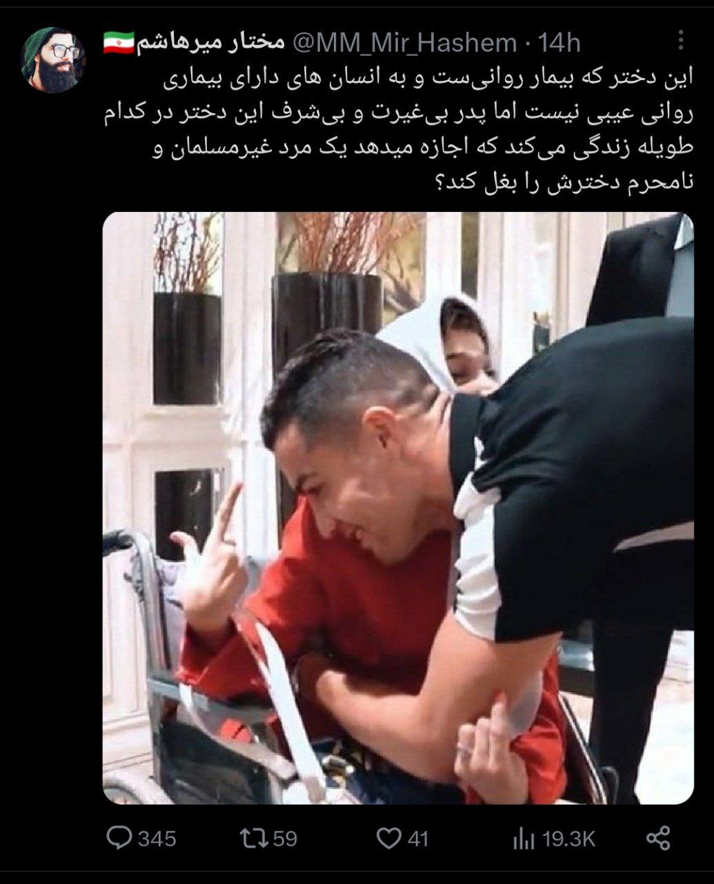 کاربران نوشتند: بیمار روانی خودت هستی که آغوش برادرانه و پرمحبت رونالدو به این دختر معصوم و پاک رو اینطوری تعبیر میکنی ... ننگ بر شما با این طرز فکر بیمار گونه .................