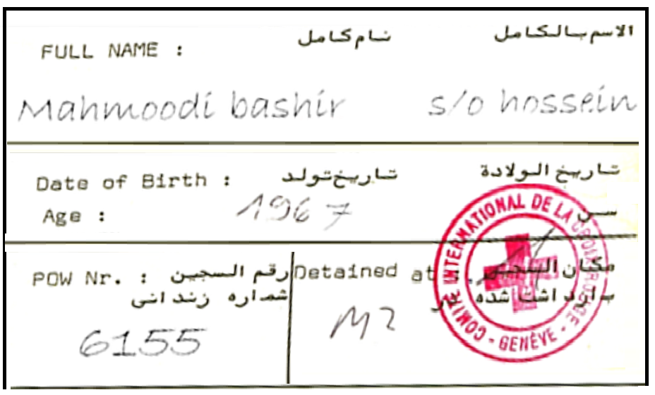 شماره اسارت یا p.w number یا الرقم السجن در کارت آزادی هم هست همون شماره ای که روی لباس های اسارت می نوشتیم وکارت صلیبی که در اسارت داشتیم