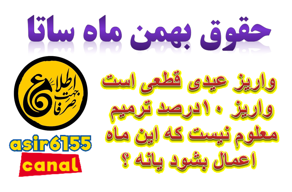 ازشب گذشته واریز حفوق بهمن با عیدی و افزایش آغاز شد [ دوشنبه ۳۰ بهمن ۱۴۰۲ ] [ 4:3 AM ] [ اسیر6155 ]
