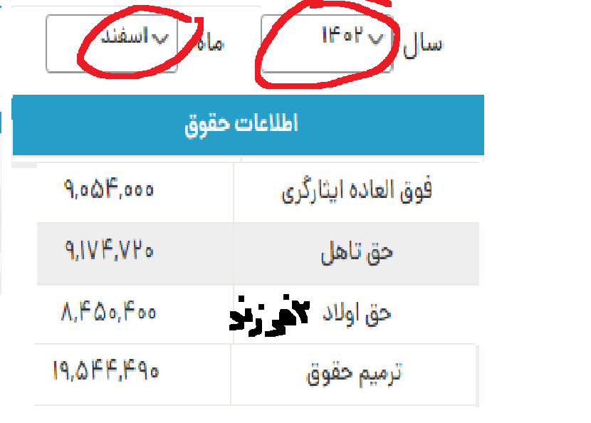 فیش اسفند با حق اولاد 2نفر
