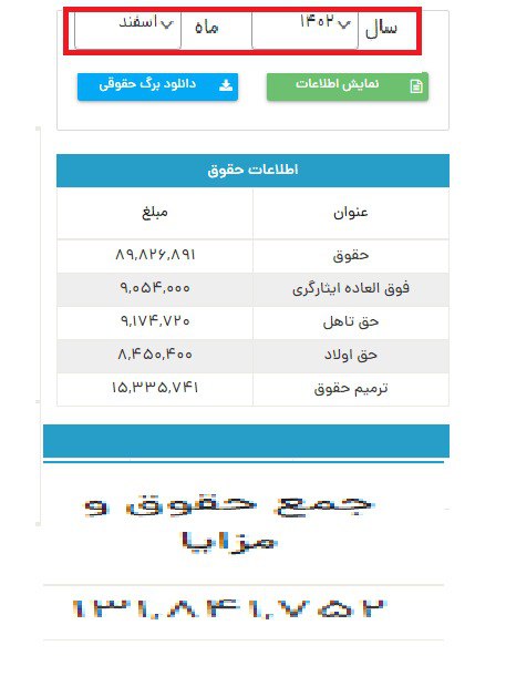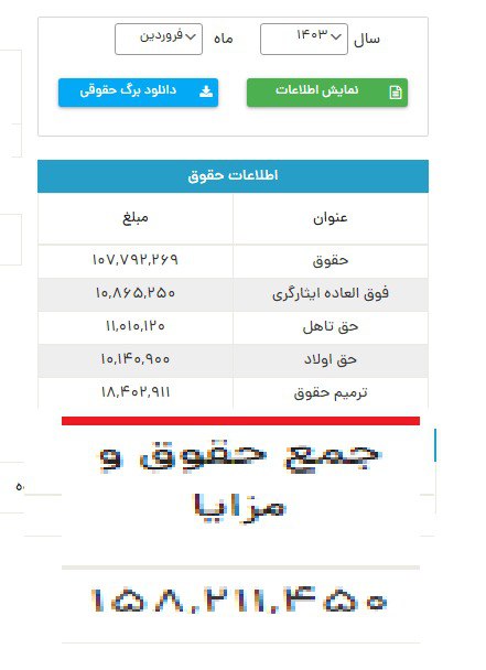 فیش تبصره بگیر ماه 38 با دو اولاد در فروردین 403 [ چهارشنبه ۲۹ فروردین ۱۴۰۳ ] [ 11:53 AM ] [ اسیر6155 ]