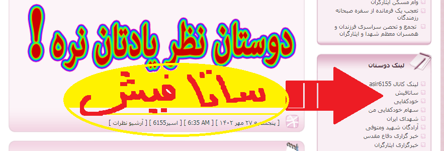 [ چهارشنبه ۲۹ فروردین ۱۴۰۳ ] [ 7:47 AM ] [ اسیر6155 ]