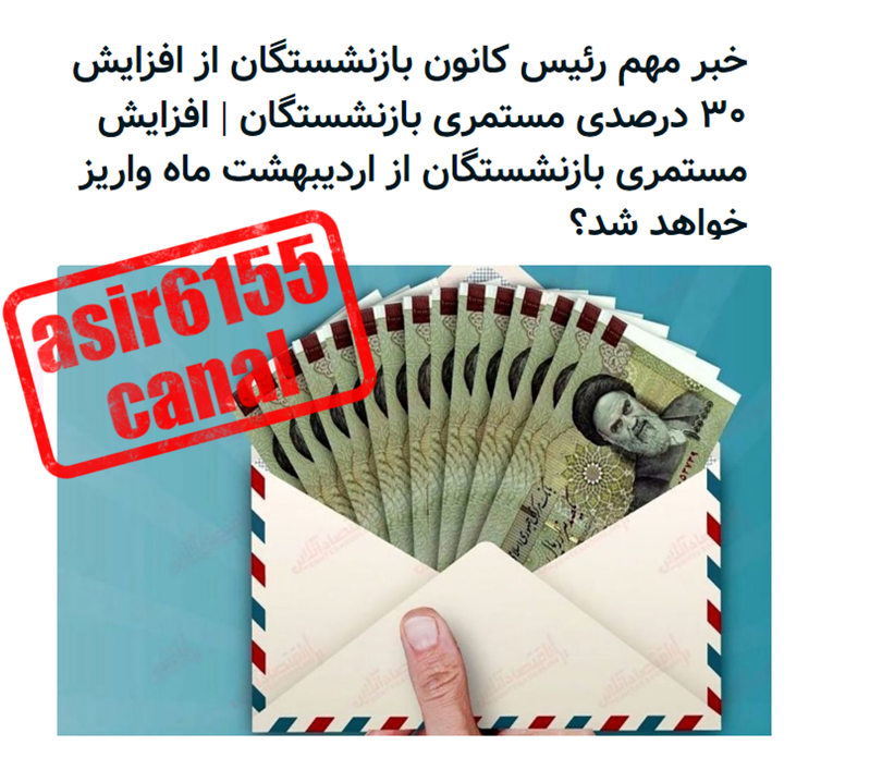 قابل توجه حقوق بگیران نیروهای مسلح [ چهارشنبه ۲۹ فروردین ۱۴۰۳ ] [ 12:6 AM ] [ اسیر6155 ]