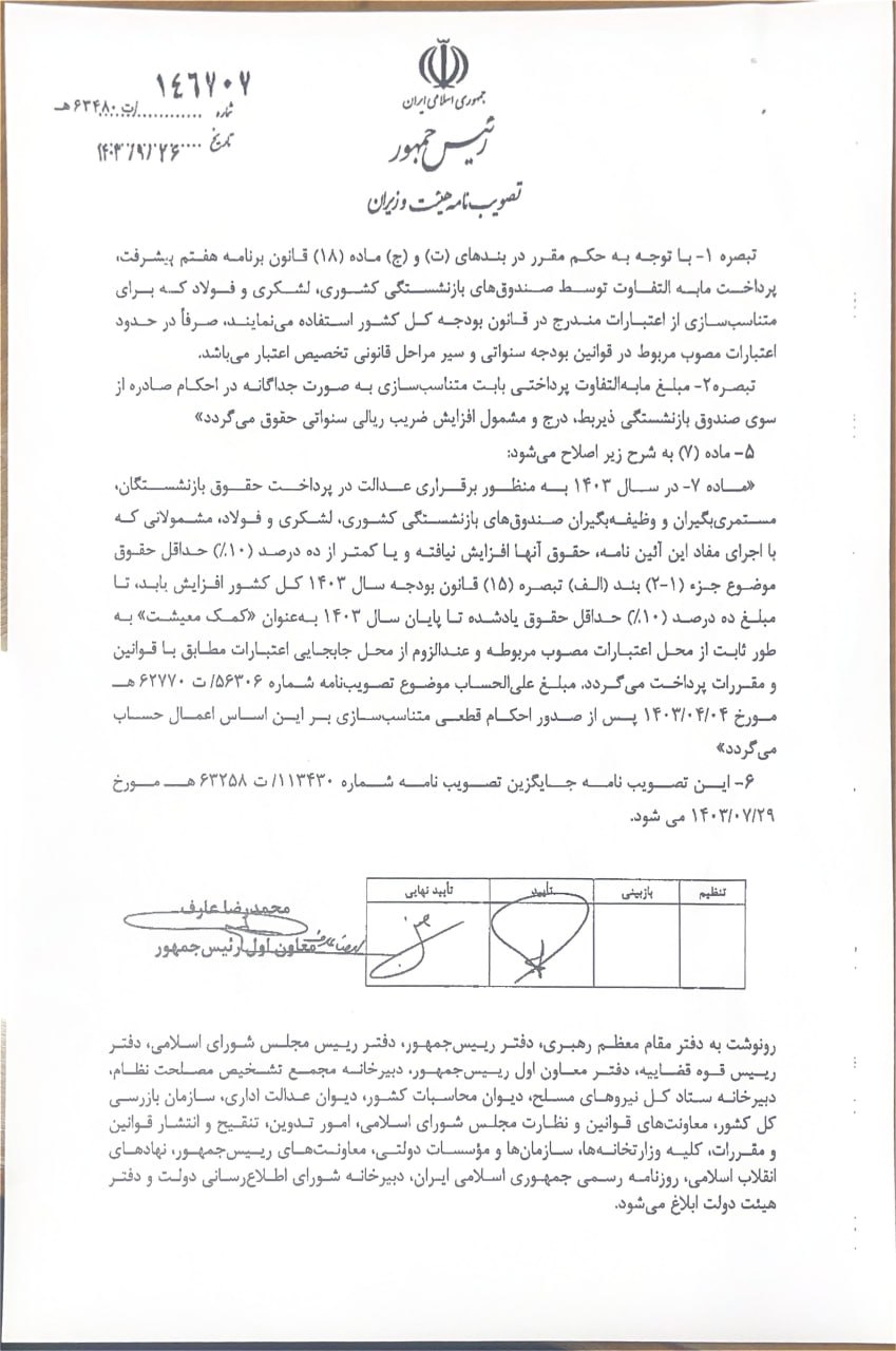 🔵👈ازاین روی طبق تماسی که باشخص دکتر فیضی نژاد، داشته ام تمام موارد را عنوان نمودند و اینکه درجهت رضایت بازنشستگان در تلاش بسیارهستند، که مجددا