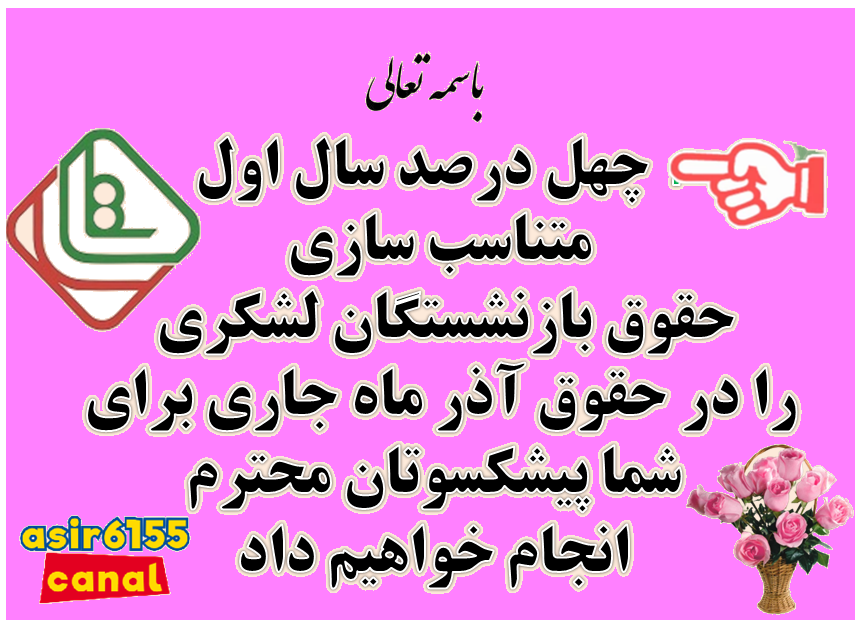 فایل هابه بانک های عامل ارسال برنامه وبودجه تامین اعتبار کرد وتا ساعاتی دیگر در حساب عزیزان بازنشسته لشکری خواهد نشست ‼️‼️