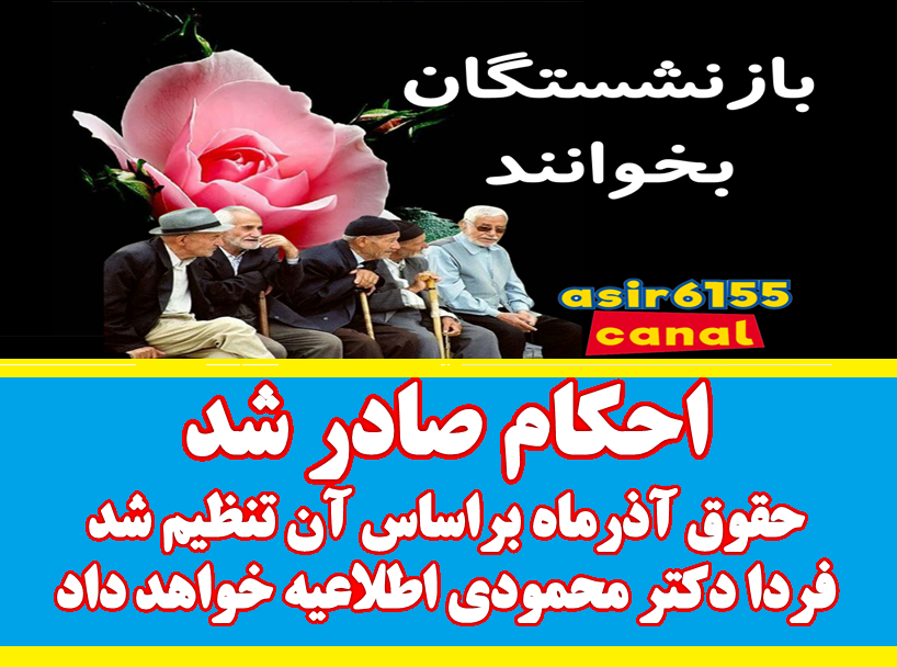 🔵👈✍️بارها عنوان نمودیم تیم ماصدای بی صدایان است وسعی کردیم ازاین فرصت به دست آمده نهایت استفاده رابه نفع شماعزیزان داشته باشیم ،باپیشنهاداتی که ازقبل داده ایم که باید احکام بازنشستگان به صورت آیتم های مشخص، که هر بازنشسته ازآن بهره مند می گردد،برایش قابل رویت شود وازحکم خالی همیشه معترض هستند واین حقشان است که هر فرد بداند چه آیتمی برایشان لحاظ گردیده ، ودرحکم حقوقی ثبت گردد 🔵👈✍️دریک تصمیم بزرگ ازسوی مسئولین ذیربط خصوصا دکتر فیضی نژاد این مهم عملیاتی گردید و صندوق بازنشستگی خودرا مکلف نموده اند که اگر حتی یکی دوروز نیاز به زمان باشد احکام صادره رامجدد اصلاح وتمام امتیازات جداول متناسب سازی را دراحکام درج نمایند ،مثال✅✅👇 🔺درصد حق مدیریت  🔵👈که مجموع این امتیازات باحقوق آذرماه منهای حقوق قبلی یعنی آبان ماه میشود ،متناسب سازی چهل درصد پرداخت ✅ 🔵👈باتوجه به پیگیریها، درآخرین تماس درتاریخ ۲۷آذرماه ،در ساعت ۲و۴۵دقیقه ی امروز داشته ایم ،خصوصا ازطرف سازمان  برنامه وبودجه وشخص جناب  دکتر پورمحمدی ،جناب دکتر دهستانی ،درخصوص رویت احکام و هماهنگی های لازم باصندوق کشوری  🔵👈تا هرچه سریعتر احکام راباکمترین خطا وبه بهترین نحو ممکن بارگذاری نمایند....