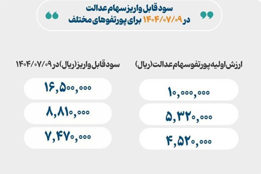 واریز سود سهام عدالت آغاز شد مدیرعامل سپردهگذاری اوراق بهادار: امیدواریم بتوانیم ظرف 48 ساعت آینده کل فرایند توزیع سود را انجام دهیم.